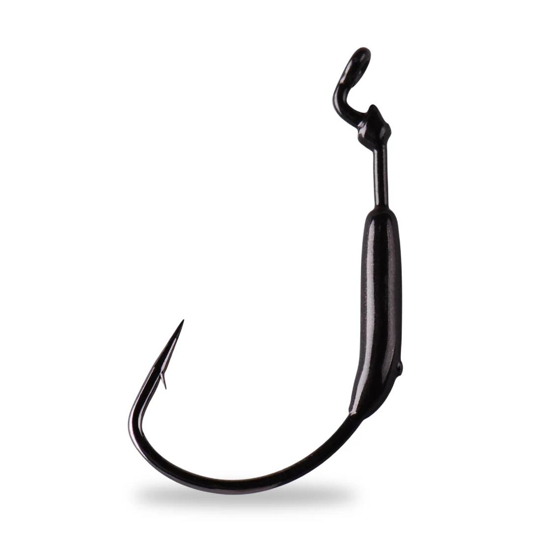 The Weighted Grip Pin® Hook features a molded resin pin that securely anchors a wide range of baits to the hook for a "no slip, no slide" design without tearing the bait. Expanding upon Mustad's popular Grip-Pin series, the Mustad Weighted KVD Grip Pin Hook features a sleek integrated 1/8oz/3,54g perfectly balanced belly weight, which allows anglers to effectively fish deeper waters. The 1X strong wire makes a great platform for fishing near hard cover and vegetation. The hook is designed for a big range of soft plastic lures such as shads, worms or swim baits. Use it to catch Bass, Perch, Zander, Brown Trout, Rainbow Trout, Pike or Walleye.