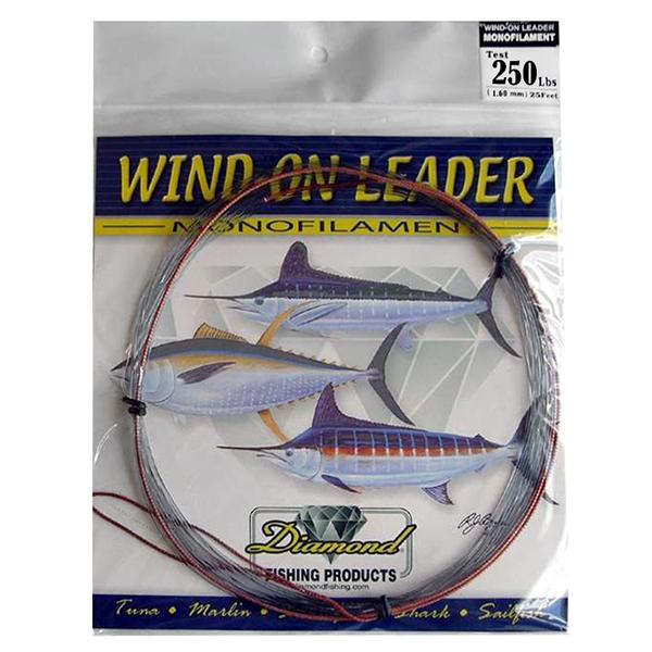 Diamond's high strength monofilament with a low stretch dyneema loop creates the strongest, most dependable wind-on leader in the world. Diamond's Wind-On leaders are attached with a loop to loop connection to your fishing line. The wind-on system improves bait presentation, eliminates the need for conventional long leaders and provides safer handling and releasing of fish at the boat.